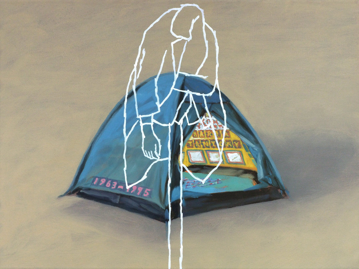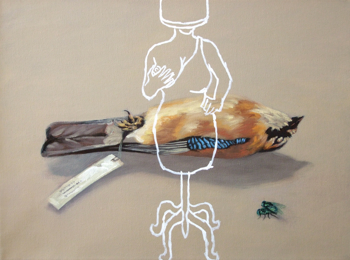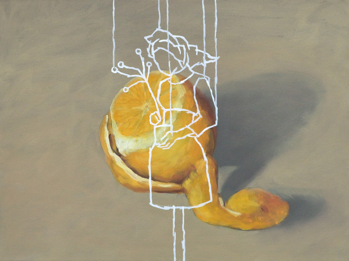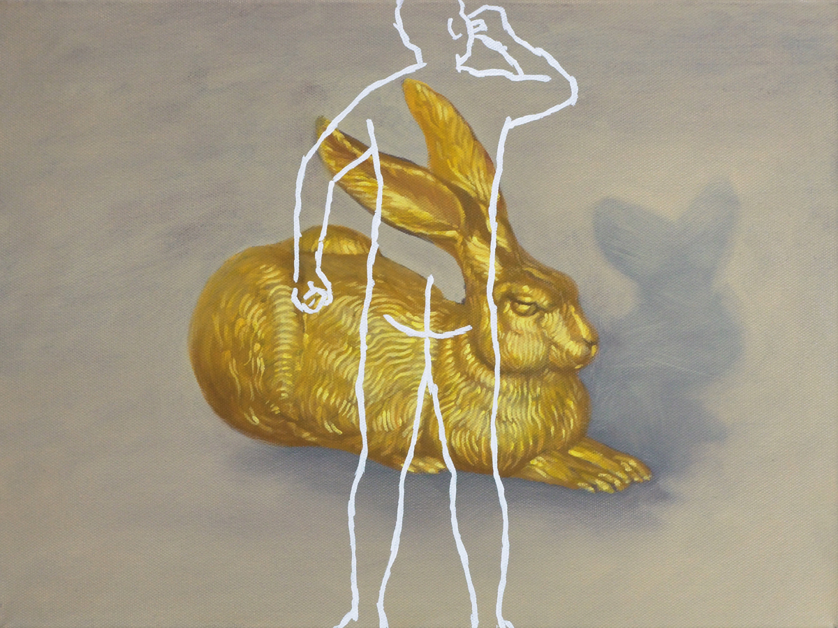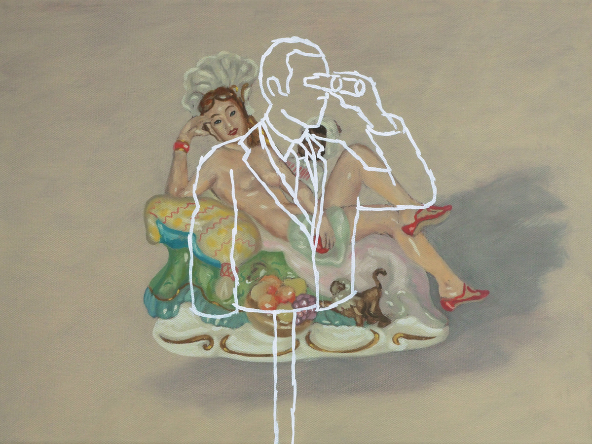 In his work phase „lost and found“, Viktor Cleve depicts objects, in realistic painting, seemingly floating on a neutral background, . He plays with quotations from the art history, from iconographic tradition, symbolism, to pop art, to the art of Young British Artits. With the white figures placed above, a new level of interpretation becomes possible. The literary titles do not solve the picture, but encode several times, potentiate the enigmatic. The works tell a story, lead the viewer to thoughts that lead beyond the content.